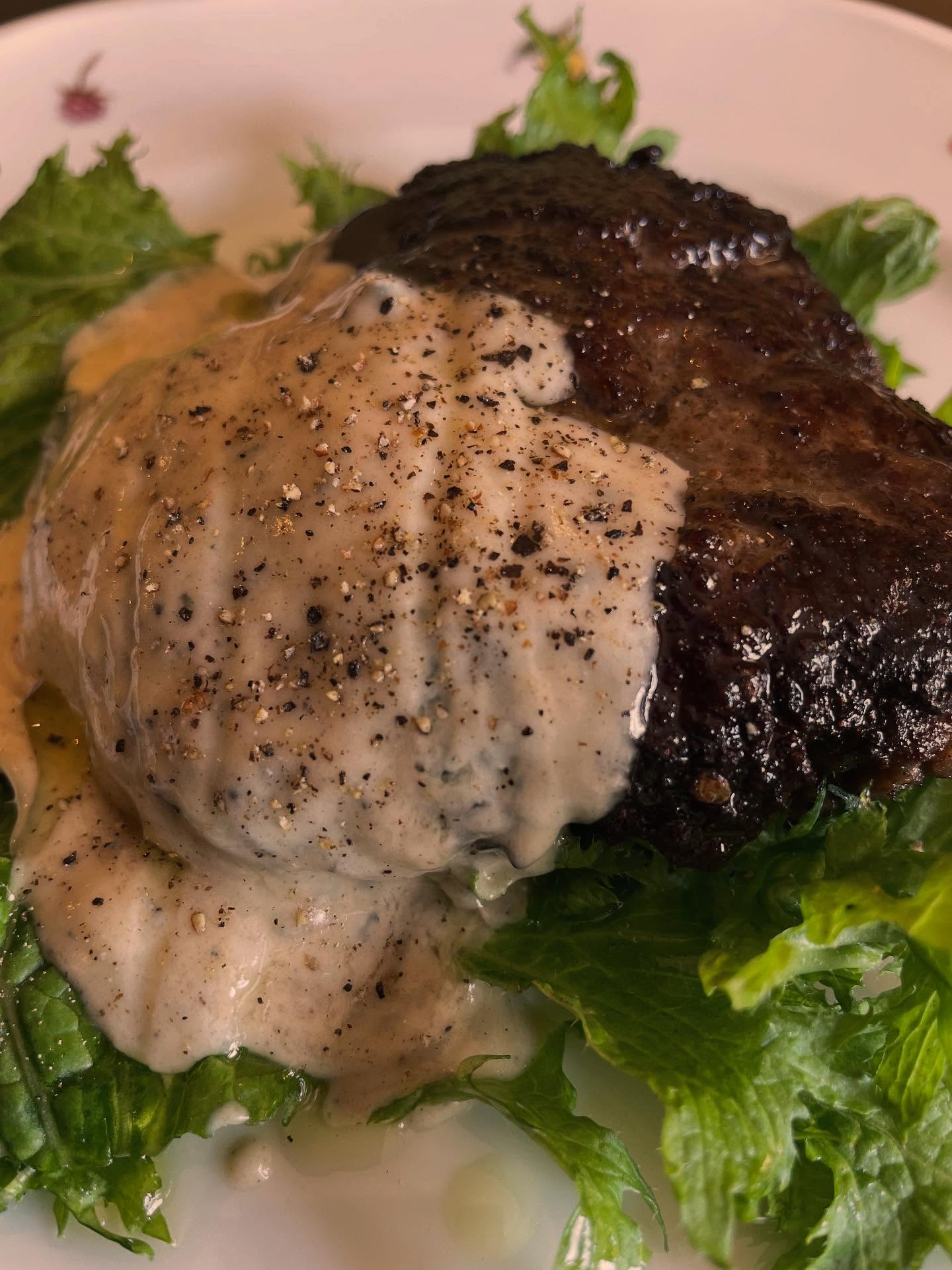 ランプとイチボの切れ端で作った贅沢なハンバーグです
